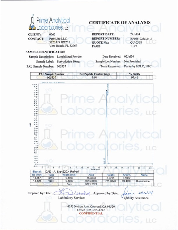 Survodutide (BI 456906) is a potent, selective glucagon receptor/GLP-1 receptor (GCGR/GLP-1R) dual agonist with EC50s of 0.52 nM and 0.33 nM in CHO-K1 cells, respectively. Survodutide, a 29-amino-acid peptide, is a potent acylated peptide containing a C18 fatty acid. Survodutide has robust anti-obesity efficacy achieved by increasing energy expenditure and decreasing food intake.