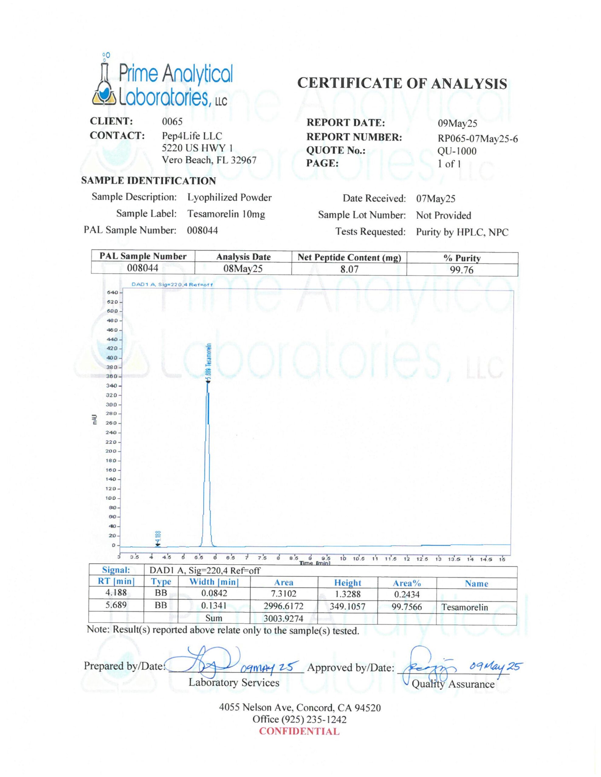 *Reconstitute lyophilized powder with bactiostatic water **NOT INCLUDED. MUST BE ORDERED SEPARATELY
