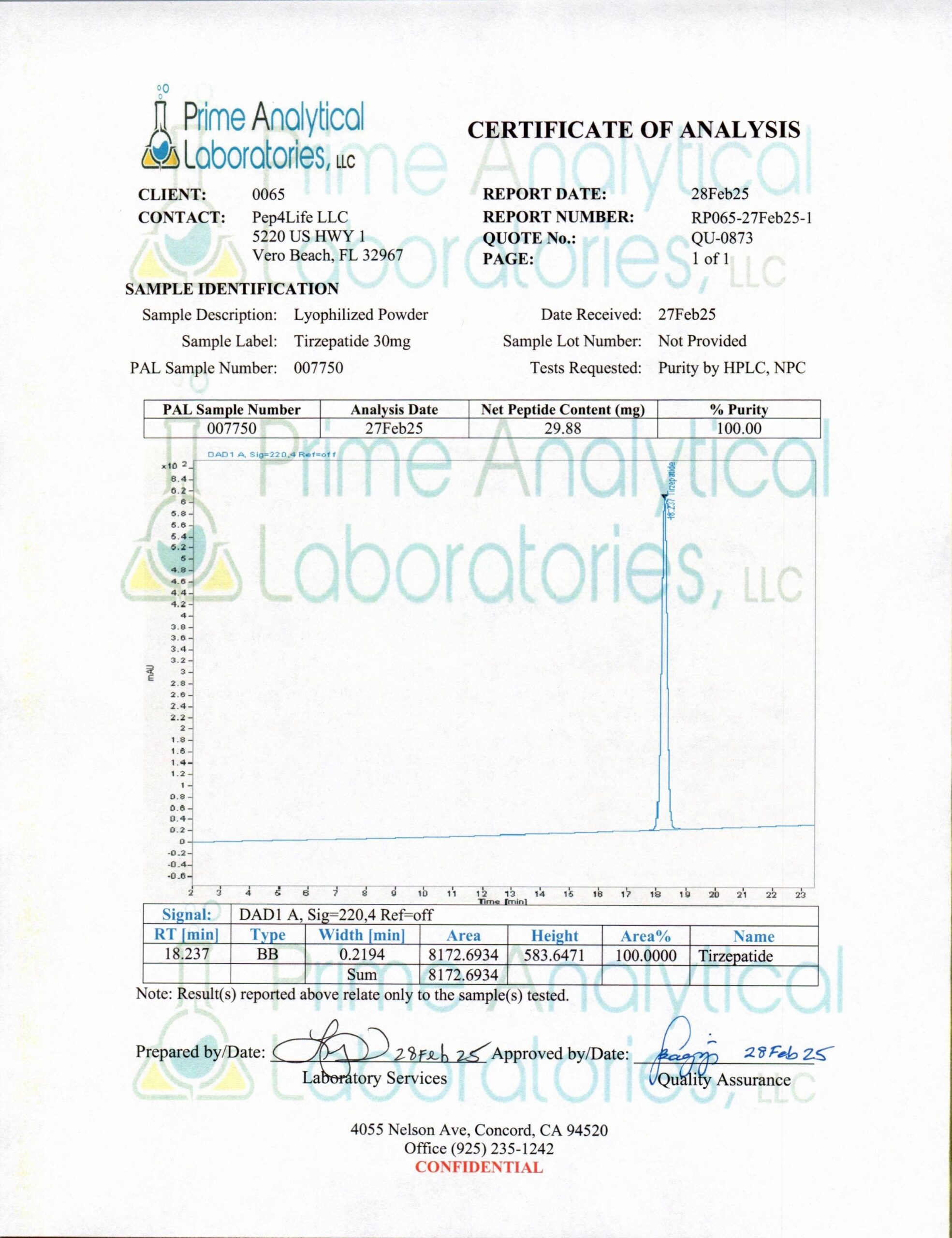 Tirzepatide is a GLP1 (glucagon-like peptide-1 agonist) and a GIP (glucose-dependent insulinotropic polypeptide), which is researched for the disease of obesity by reducing appetite and food intake.